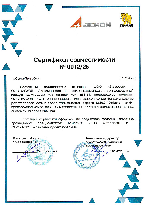 Сертификат совместимости Расчет режимов резания и СУБД Postgres Pro