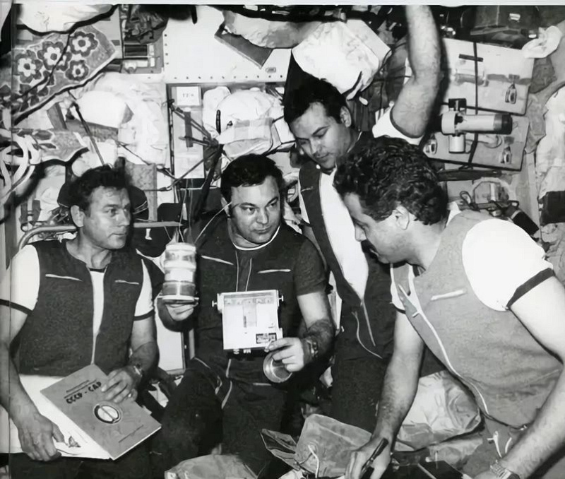 Вечером нам приходит радиограмма, в которой расписана вся программа на следующий день, какие эксперименты необходимо сделать. К ним нужно подготовиться, найти нужные приборы. Так как грузовых кораблей прибывает много, мы все складываем в мешки, ручкой подписываем, что в них. Мешки развешаны по всей станции. По телевидению показывают, что все красиво, вокруг порядок, ребята в костюмах делают доклад. На самом деле за камерой сплошные мешки и коробки. Экипажи весь полет проводят в шортах и майках, так как на станции очень жарко. Костюмы надевают перед съемкой, потом быстро снимают. Чтобы подготовиться к следующему дню по 20-й форме, нужно найти все приборы. Бывало, мы целую ночь искали один прибор с тем, чтобы не сорвать программу на следующий день. А программа такая. Утром подъем по московскому времени в 8 часов, гигиенические процедуры, завтрак, два часа работы, потом тренировка — один на велоэргометре, второй на дорожке. После приводим себя в порядок (у нас душа не было, обтирались мокрыми полотенцами). Потом обед, снова работа, вечерняя тренировка, ужин и свободное время. Мы или искали, что необходимо на следующий день, или ничего не делали.