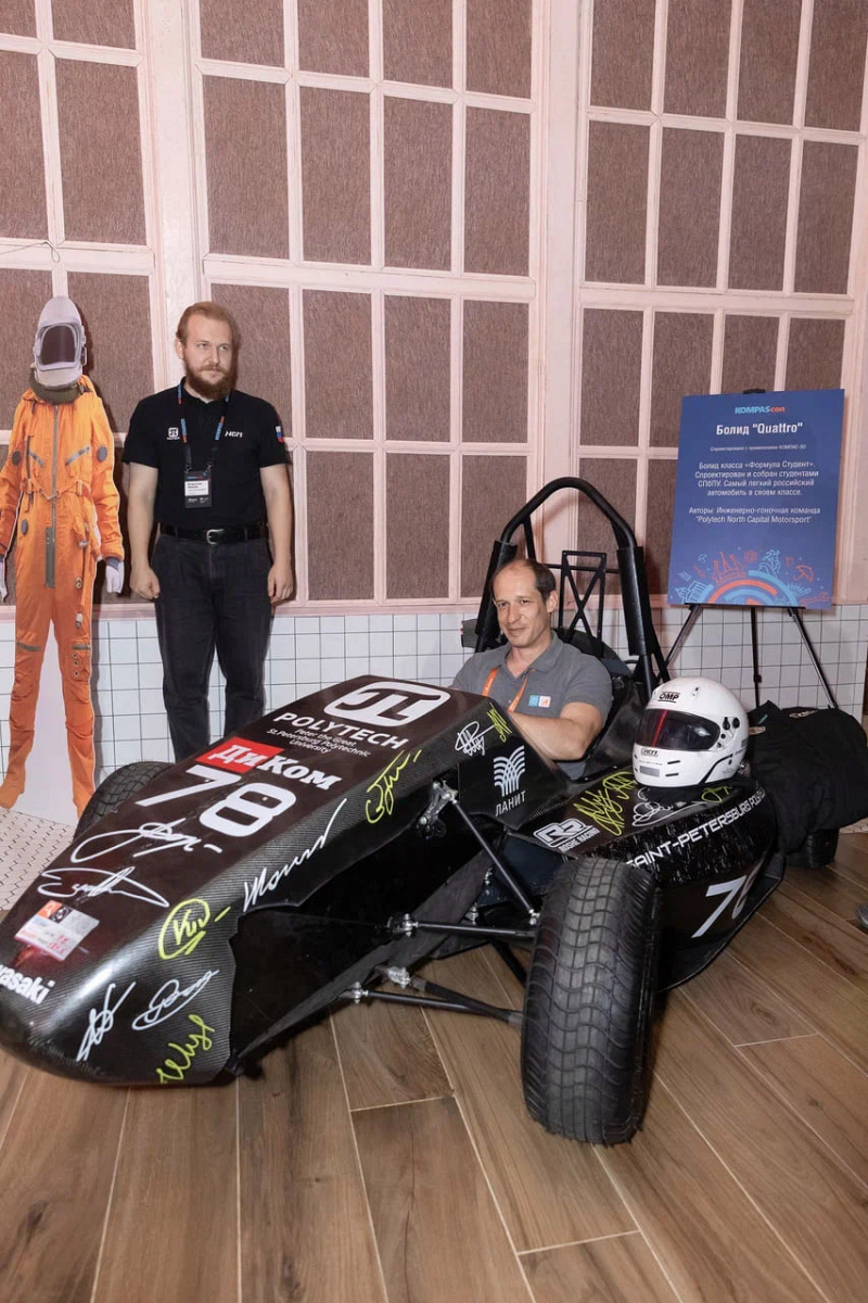 Ни один KOMPAScon не обходится без выставки техники, которая была создана с помощью КОМПАС-3D. В этом году звездой фестиваля стал болид Quattro, спроектированный и собранный студентами Санкт-Петербургского политехнического университета Петра Великого с применением отечественной САПР. Это самый легкий российский автомобиль в своем классе.