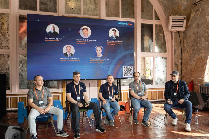 О развитии не только КОМПАС-3D, но и систем, составляющих PLM-решение АСКОН, участники KOMPAScon могли узнать из первых уст на дискуссии. На вопросы отвечали директор АСКОН-Системы проектирования Сергей Евсиков, директор по продукту КОМПАС-3D Игорь Волокитин, директор дивизиона «Приложения КОМПАС-3D» Владимир Панченко, руководитель дивизиона MDM Дмитрий Вылетков, руководитель группы строительных САПР Константин Москалев.