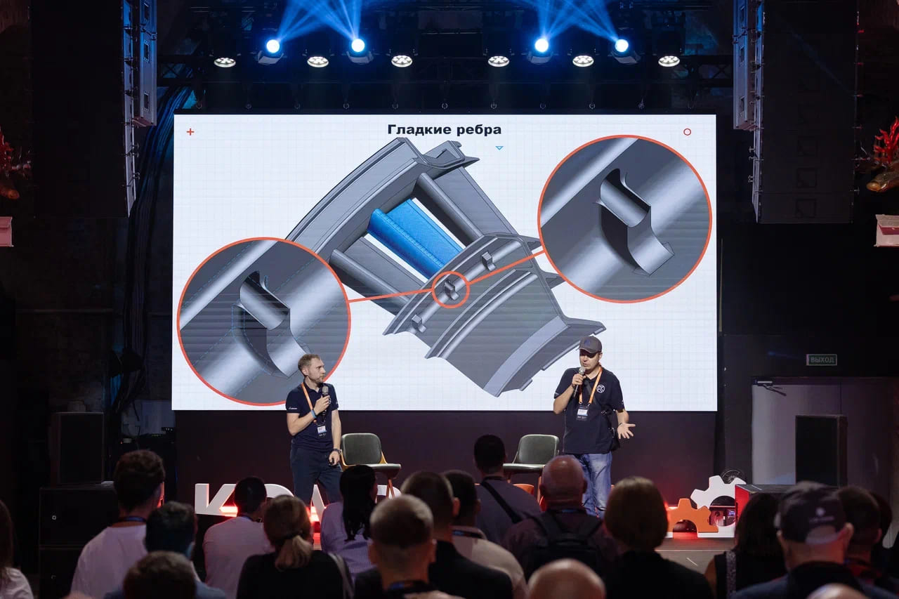 Финальным аккордом встречи стало совместное выступление Дмитрия Крекина, руководителя направления Машиностроение в маркетинге КОМПАС-3D, и Константина Корюкина, активного участника сообщества КОМПАС и генерального директора конструкторского бюро «ОКБ» из Новосибирска. Они рассмотрели новинки в последних версиях КОМПАС-3D , которые появились по предложениям крупных заказчиков, но найдут свое применение также на небольших и средних предприятиях машиностроения.