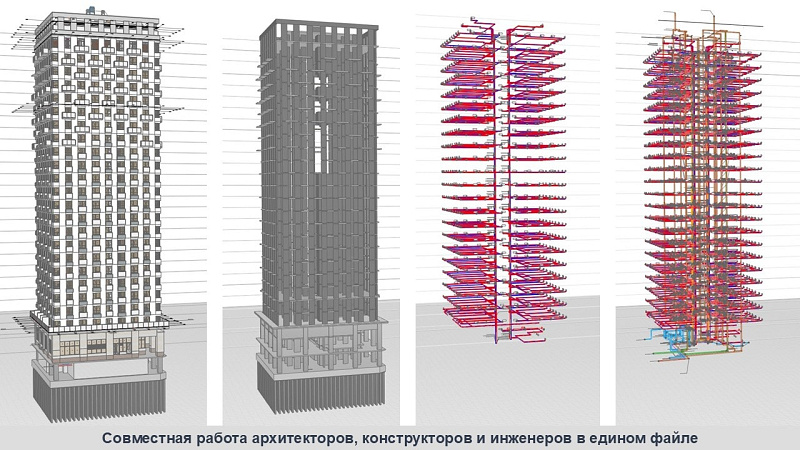 В ходе пилотного проекта в Renga были смоделированы архитектурные (АР) и конструктивные решения (КР), а также инженерное оборудование и сети (отопление, часть систем вентиляции) жилого комплекса. Далее в Pilot-BIM специалисты выдавали замечания по модели, контролировали отработку задач, выполняли поиск и устранение коллизий.