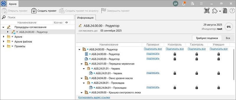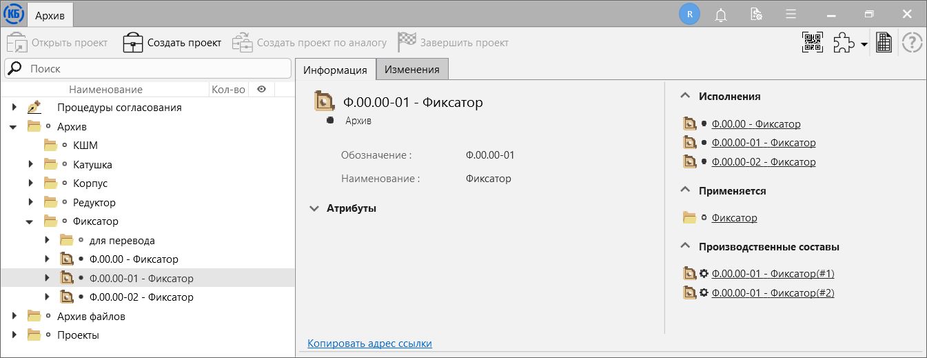 | Перевод в Архив | Только одновременный перевод всех исполнений при обязательном наличии базового исполнения в проекте или архиве | Возможен перевод одного или нескольких исполнений, даже без базового |