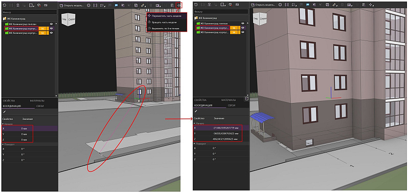 Управлять положением отдельных частей моделей и облаков точек теперь можно вручную прямо на 3D-сцене: перемещать их, вращать и выравнивать. Это позволяет наглядно и удобно подбирать нужное взаимное расположение частей модели.