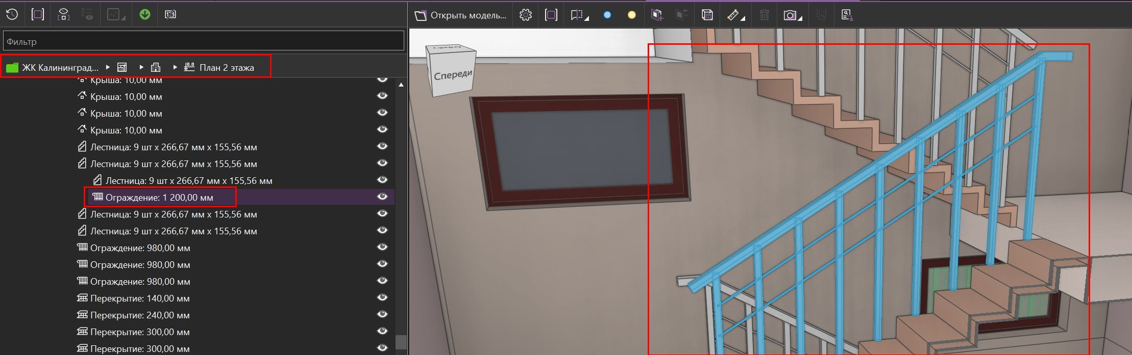 Добавили навигационную панель над деревом модели — она показывает, где именно в модели находится выбранный элемент: в составе какой конструкции, на каком этаже, в какой части модели и т. д. Пользователь может быстро перейти к любому из родительских элементов, выбрав его в панели. Так ориентироваться в модели и перемещаться между её элементами будет удобнее и быстрее.