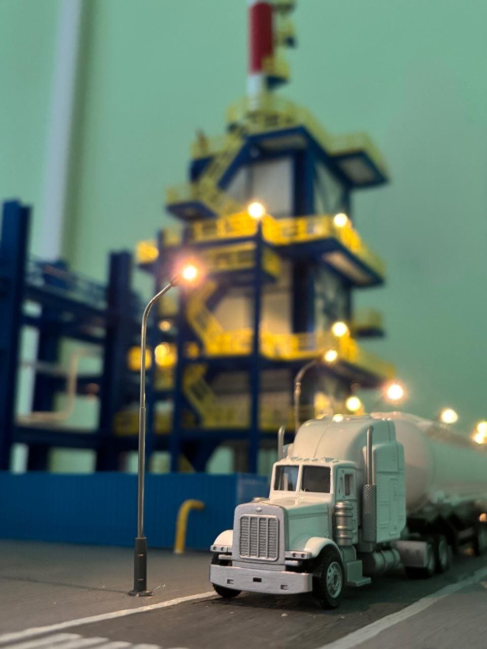 Наиболее сложной частью работы оказалась сборка макета: соединить сотни распечатанных на 3D-принтере деталей, скрыть в технологических зданиях микронасосы, светодиоды, дым-машину для имитации возгорания, электронику и блоки питания, сделать безопасный факел с реальным пламенем.