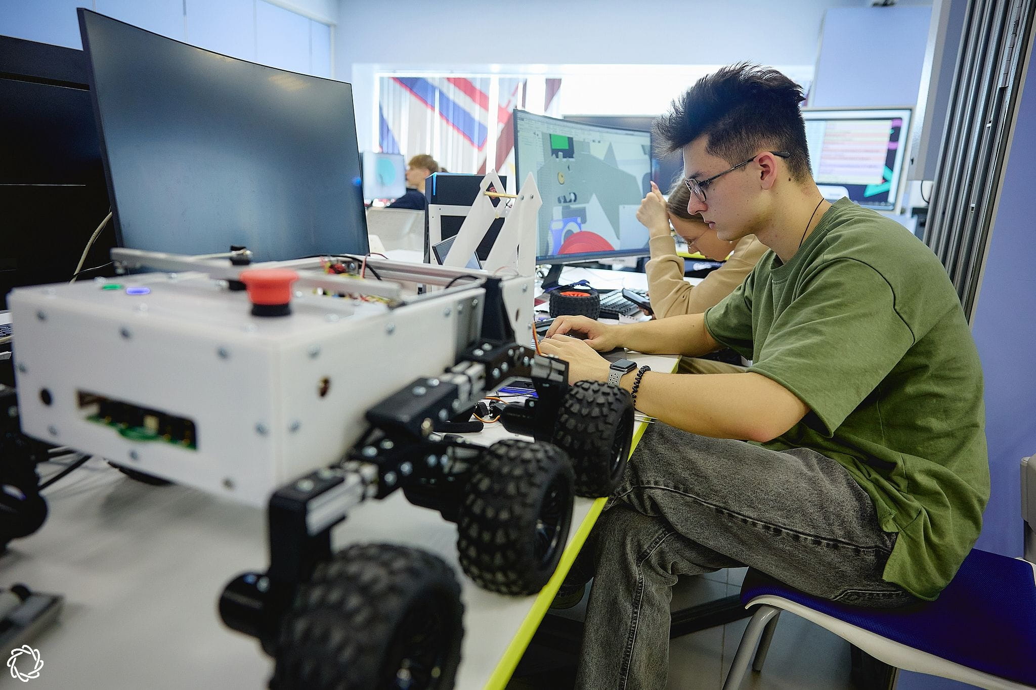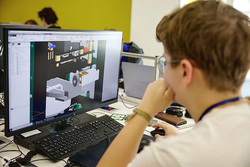 На площадке РТУ МИРЭА, где проходили финалы НТО, развернулось настоящее конструкторское бюро. Участники спроектировали в системе КОМПАС-3D рабочий манипулятор и интегрировали его в ровер-планетоход, предназначенный для поиска, погрузки и ориентации на местности. Работу ровера проверили на испытательном полигоне.