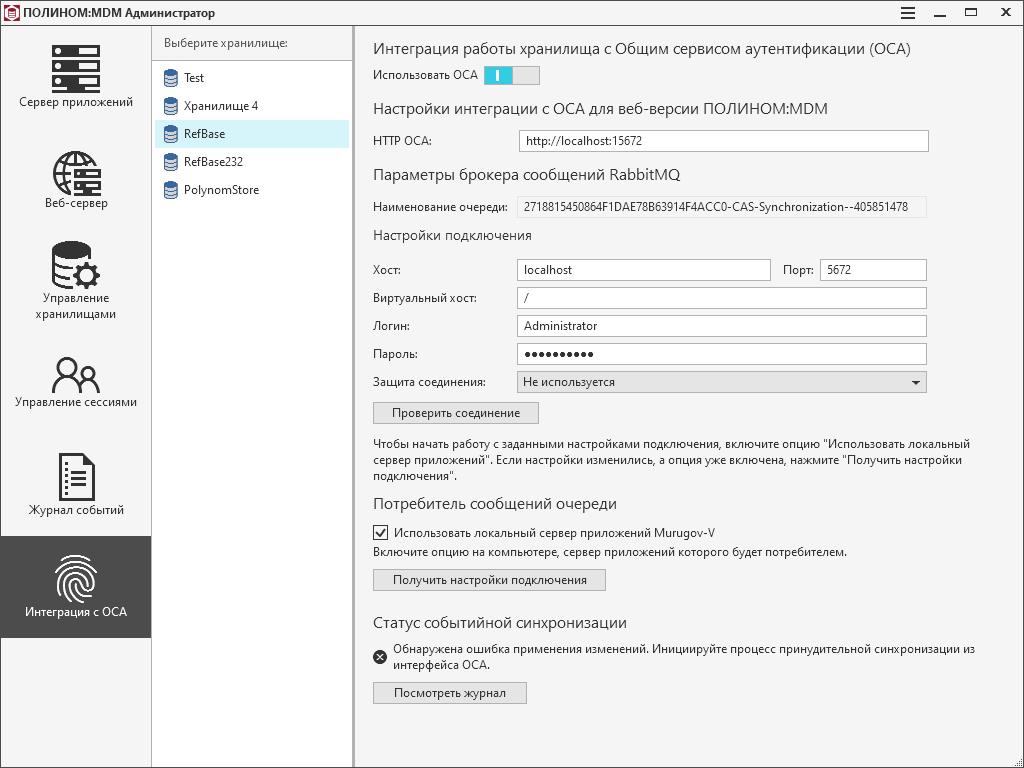 ОСА работает только с веб-версией ПОЛИНОМ:MDM.