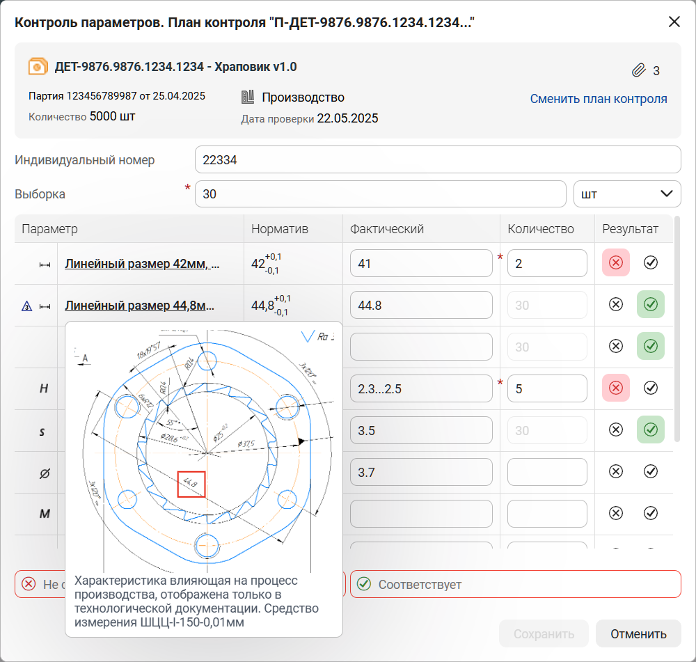 Проводя производственный контроль, возможно создать индивидуальный план на каждую технологическую операцию и собирать информацию по всему технологическому процессу.