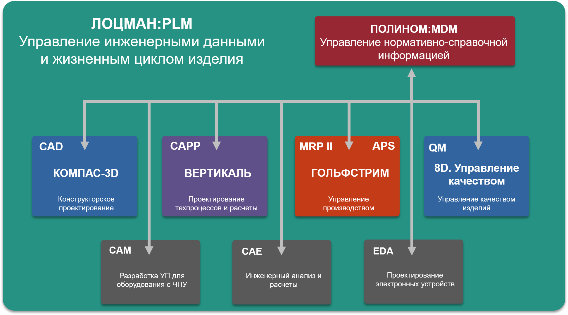 Система управления инженерными данными и жизненным циклом изделия ЛОЦМАН:PLM CERTIFIED выполняет координирующую роль в рамках программного комплекса АСКОН для машиностроения. Ее задача состоит в объединении бизнес-процессов предприятия, работы инженерных департаментов и использования программных решений в единый процесс разработки изделий.