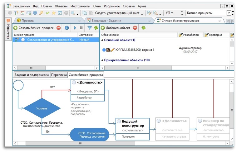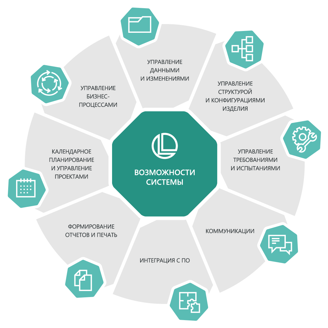 Также система позволяет проводить изменения в данных и документации на каждом из этапов и обеспечивает возможность управления электронным и смешанным документооборотом предприятия.