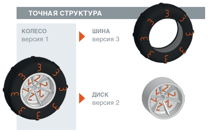 Механизмы управления конфигурациями в ЛОЦМАН:PLM CERTIFIED позволяют создавать многовариантные структуры изделия, исключая при этом необходимость описания каждого варианта в полном объеме, вместо этого описывая только отличия (опции, замены, варианты).