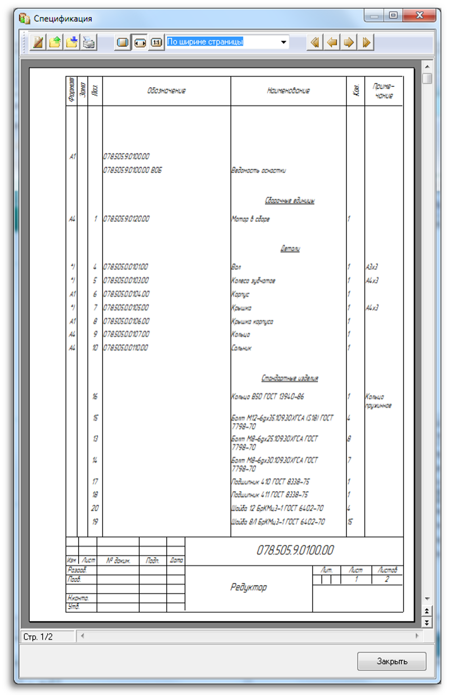 Наиболее распространенные стандартизированные отчеты в соответствии с требованиями стандартов серий ЕСКД и ЕСТД поставляются в готовом виде (например, конструкторская спецификация, ведомость покупных изделий, ведомость материалов и др.).