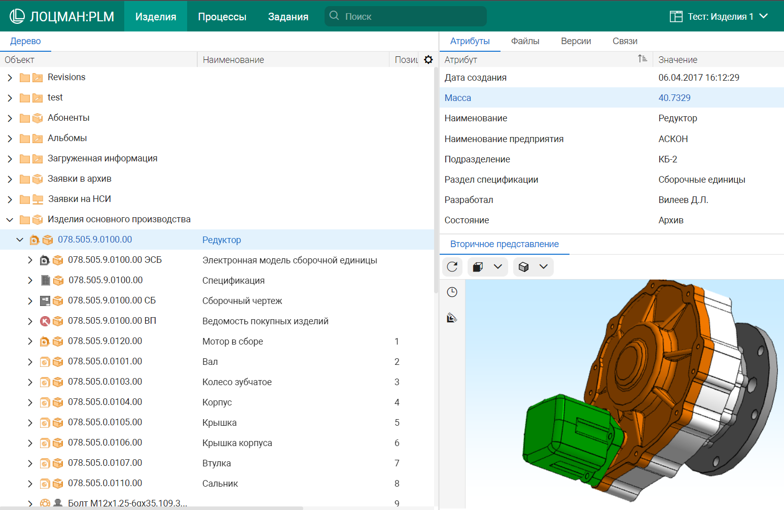 ЛОЦМАН:PLM CERTIFIED обеспечивает управление бизнес-процессами предприятия в рамках инженерной деятельности и позволяет каждому участнику получать исходные данные, фиксировать результаты своей работы и передавать задания другим участникам процесса.