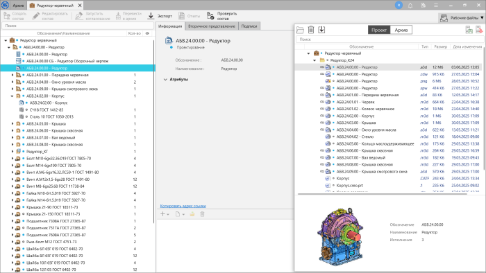 ЛОЦМАН:КБ — типовое решение, предназначенное для создания и управления электронным архивом конструкторской документации.