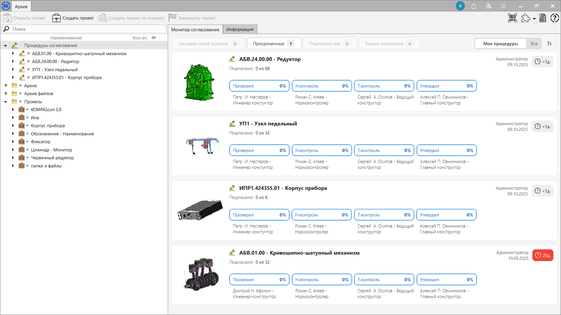 Если одновременно запущено несколько процедур, то их прогресс удобно отслеживать на Мониторе согласования.