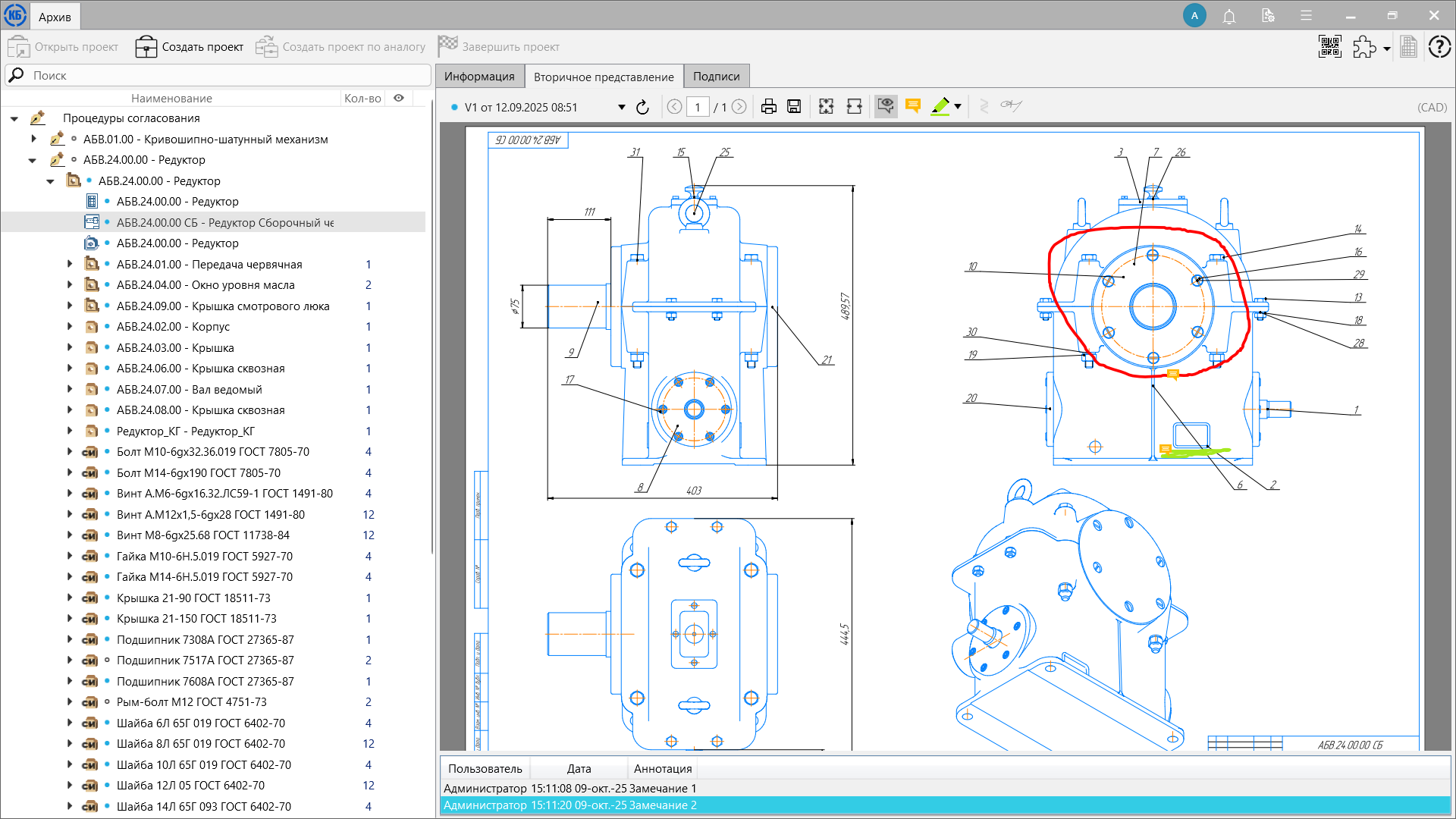 Замечания к конструкции, выявленные в процедуре согласования, могут быть зафиксированы в виде текста, стикера на вторичном представлении 2D-документов или «красного карандаша».